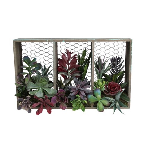 Succulent Arrangement Artificial In Wooden Planter Table Etsy